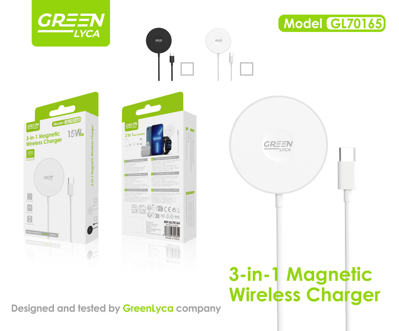 La Estación de Carga Inalámbrica 3 en 1 te permite cargar móvil, smartwatch y auriculares al mismo tiempo, sin cables ni desorden. Mantén tu espacio limpio y tus dispositivos siempre listos.