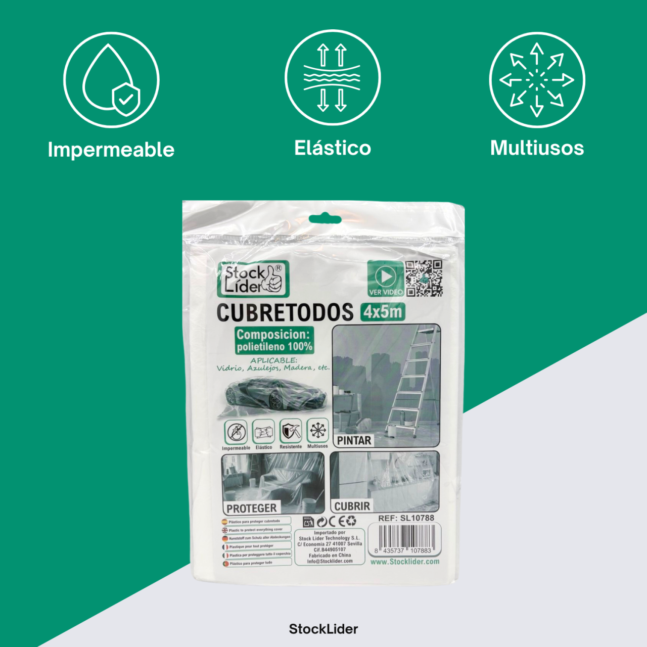 Fabricado con polietileno 100%, este cubretodo ofrece una protección superior frente a salpicaduras, humedad, polvo y suciedad, manteniendo tus espacios y objetos en perfecto estado incluso en los entornos más exigentes.