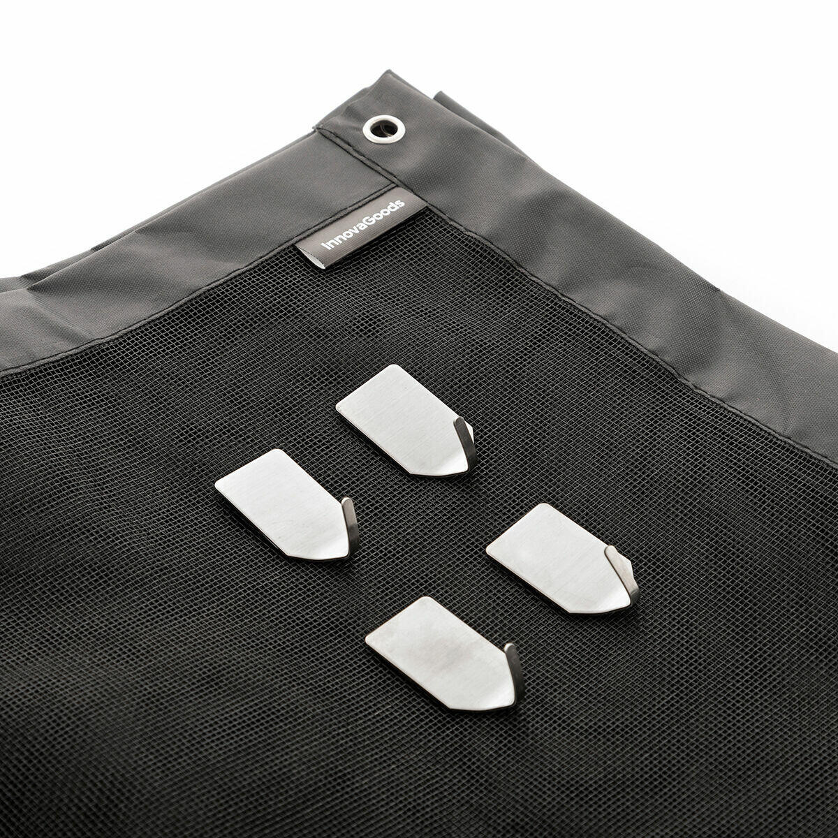 Fabricada en poliéster reforzado con anillas metálicas, combina resistencia y ligereza para adaptarse a distintos espacios del hogar.